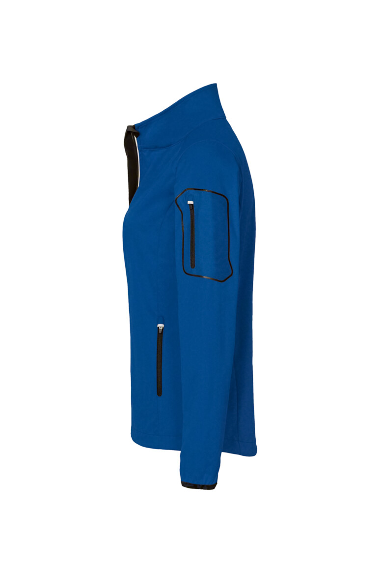 Leichte, atmungsaktive und strapazierfähige Softshelljacke mit wasser- und winddichtem Softshell-Obermaterial und Teilungsnähten im Vorder- und Rückenteil. Elastische Ärmelbündchen mit Daumenschlaufe. Reflektierende Druckgrafik am verlängerten, abgerundeten Rückenteil. Weitenverstellbarer Saumabschluss mit Tunnelkordelzug und Stoppern. Hochwertiger 2-Wege-Frontreißverschluss mit innenliegender Windschutzpatte, Reißverschlussgarage und Reflexpaspel. Verschweißte Reißverschlusstasche am linken Ärmel und seitliche Reißverschlusstaschen mit Reflexapplikation. Alle Click-down-Reißverschlüsse von YKK® in Schwarz. Leichtes, dehnfähiges Softshellmaterial aus Interlock-3-Lagen-Laminat mit TRIACTIVE PRO Technologie: eine wasser- und winddichte Membrane, die gleichzeitig atmungsaktiv ist. Verfügbar auch als Unisexmodell. Normale Passform: Regular Fit.